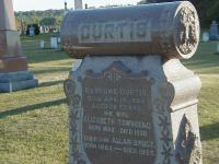 Date 1930 per Memorial.7,8 She was buried on 7 December 1930 at Warkworth Cemetery, Warkworth, Ontario; Memorial: (See Exhibit) Curtis; Ransome Curtis; Died Apr 18 1892; Aged 58 Years; His Wife; Elizabeth Townsend; Born 1832 died 1930; Their Son allan Bruce; Born 1883 - Died 1925 (Warkworth Cemetery, Percy Twp.)7