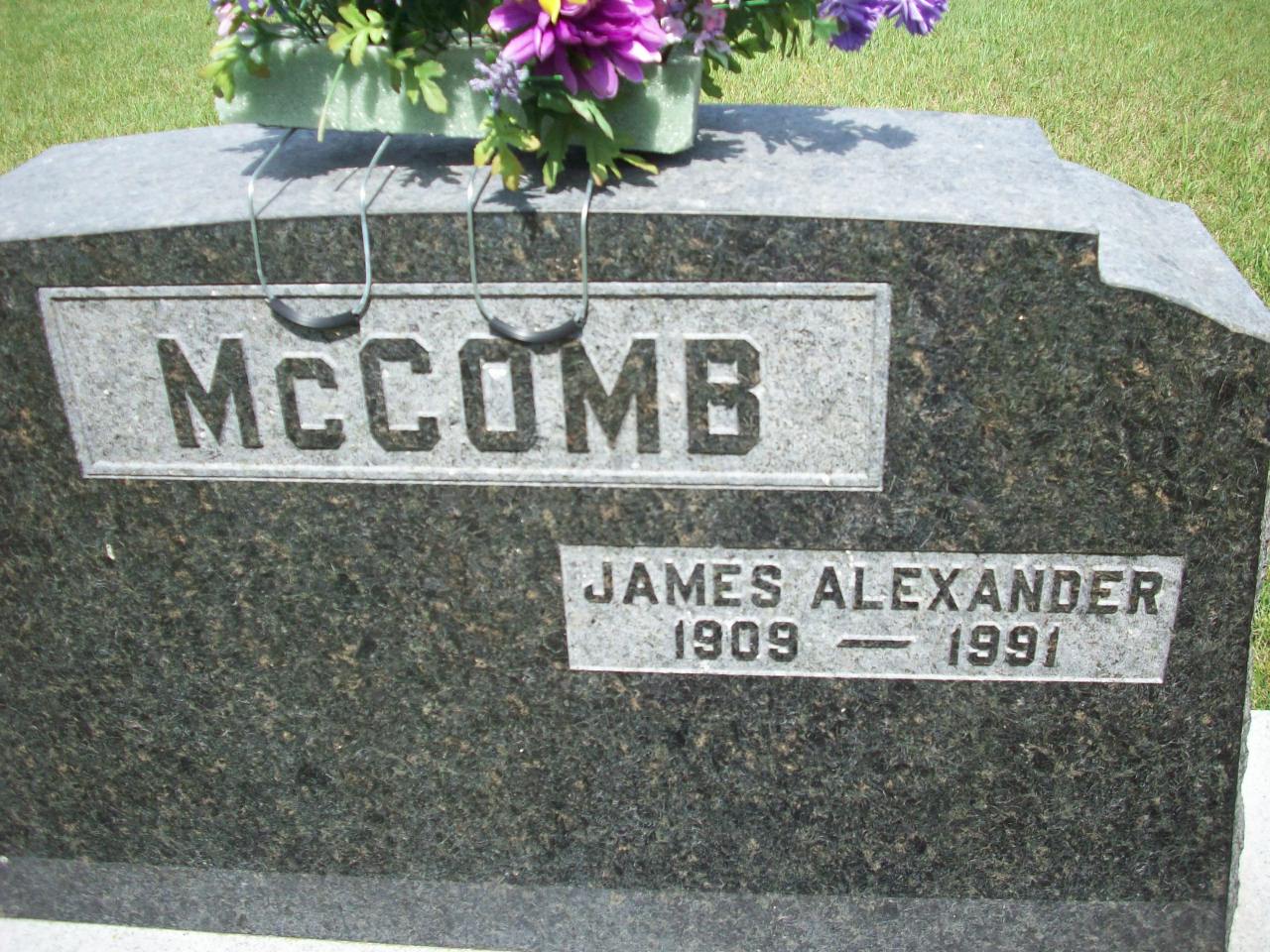 "James Alexander Mccomb born Aug. 20, 1909 was a Cramahe Township Councillor. He was also Deputy Reeve from 1970-1976. He never married." History of Cramahe Twp., pg. 125.1,2 He appeared on the census of 6 June 1931 at Cramahe Twp., Northumberland Co., Ontario; Age 21 at 1931 Census: see Samuel McComb.2 He died on 13 December 1991 at Ontario at age 82; Date 1991 per Memorial.1 He was buried on 16 December 1991 at Castleton Cemetery, Castleton, Northumberland Co., Ontario; Memorial: (See Exhibit) Jameds Alexander; 1909 - 1991 (Castleton Cemetery, Castleton, Jul 13 2009.)1