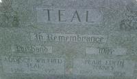 CEMSearch: Name: Pearl Edith Teal; Maiden: Turney; Born: 1885; Died: 1953; Notes: Wife of Addison Wilfred Teal; Buried: Salem Cemetery, Sect NW; Other names: Addison Wilfred Teal (1886-1955), George Francis Teal (1860-1933), Mary Elizabeth Teal (Fraleigh) (1857-1941)