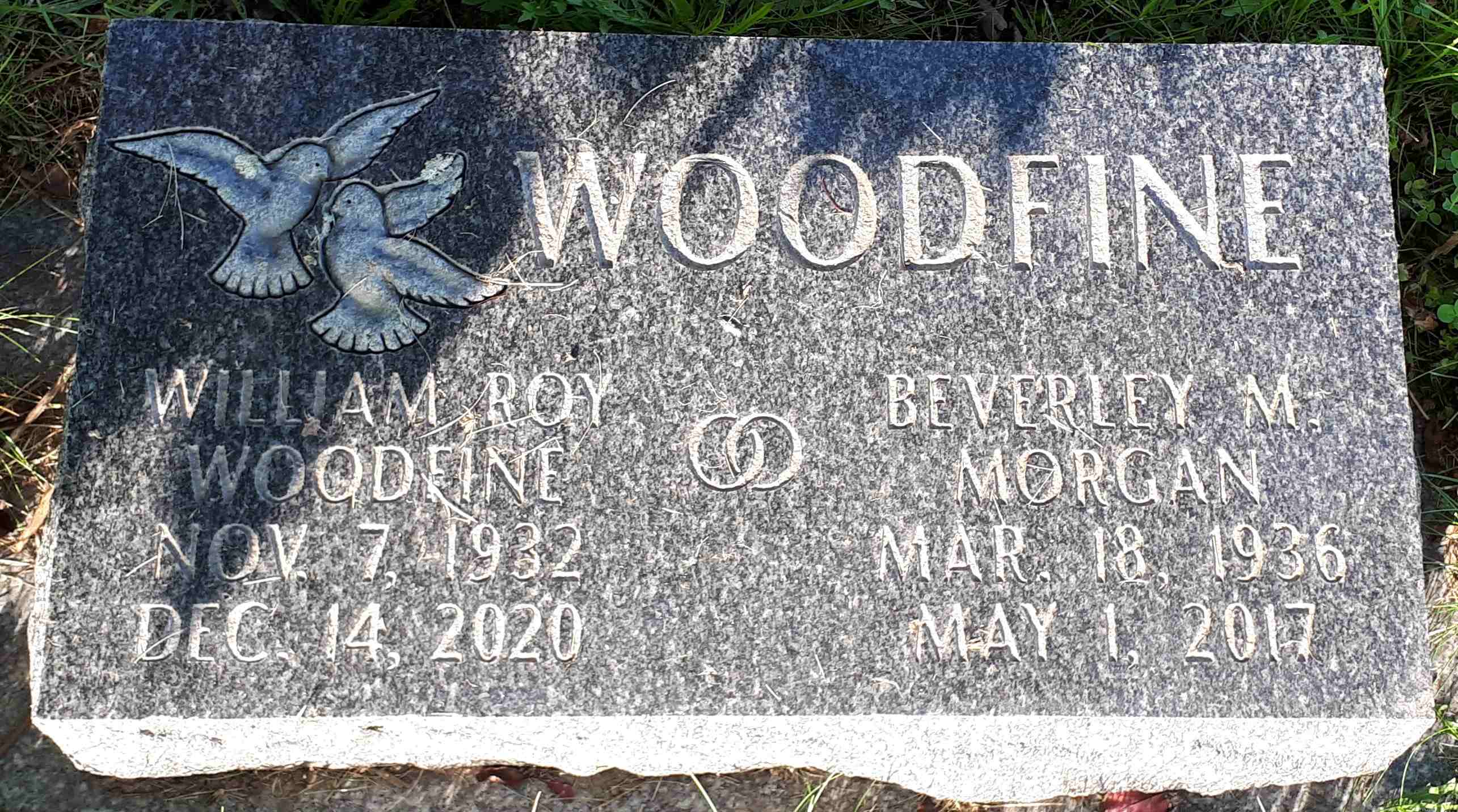 Beverly M. Morgan was born on 18 March 1936 at Brighton Twp., Northumberland Co., Ontario; Date Mar 18 1936 per Memorial.1 She married William Roy Woodfine after 1950. Beverly M. Morgan lived on 4 August 1962 at Scarborough, Ontario; Per Obit of her father, Arthur Morgan. She lived on 21 April 1997 at Ontario; " ... loving husband of Patricia Eleanor (Kelly). Dear father of Judy and Carl; Nancy and Chuck; John and Carol; Karen and Robert; and father-in-law of Gloria; predeceased by a son Joe. Brother of Max and Mae Morgan; Carole (Mrs. Fred Boulton) and Beverley (Mrs. Roy Woodbine); predeceased by a brother Lyle and a sister Lois. Sadly missed by grandchildren Tammie, Tracy, Tanya, Scott, Sheena, Jesse, Magan, Jessica and Tim." per the Death Notice of Cecil Reginald Morgan, from The Tweedsmuir Histories of Codrington, copied from microfilm at The Metro Toronto Reference Library, Nov. 2007.2 She " ... survived by his sister Beverly & her husband Roy Woodfine." per Obit of Max Morgan. on 21 February 2012.3 She died on 1 May 2017 at Ontario at age 81; Date May 1 2017 per Memorial.1 She was buried on 3 May 2017 at Carman Cemetery, Brighton Twp., Carman, Northumberland Co., Ontario; Memorial: (see Exhibit) WOODFINE; William Roy; Woodfine; Nov. 7, 1932; Dec. 14, 2020; Beverley M; Morgan; Mar. 18, 1936; May 1, 2017 (Carman Cemetery, Brighton Twp., image by Dan Buchanan, Aug 12 2023.)1
