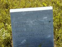John L. Inglis was born on 14 July 1860 at Cramahe Twp., Northumberland Co., Ontario; Date Jul 14 1860 per Memorial & CEMSearch. Date 1861 & location Ont. per 1881 Census. Date 1860 & location Ont. per 1871 Census. Date 1860 & location UC per 1861 Census.1,2,3,4 He appeared on the census of April 1861 at Colborne, Northumberland Co., Ontario; Age 1 at 1861 Census: see Peter Inglis.1 He appeared on the census of April 1871 at Cramahe Twp., Northumberland Co., Ontario; Age 11 at 1871 Census: see Peter Inglis.2 He married Martha J. Perry after April 1874 at Northumberland Co., Ontario; per Memorial & CEMSearch.4,5 John L. Inglis appeared on the census of April 1881 at Brighton, Northumberland Co., Ontario; Age 20 at 1881 Census: see Peter Inglis.6 He died on 2 September 1884 at Northumberland Co., Ontario, at age 24; Date Sep 2 1884 per Memorial & CEMSearch.4 He was buried on 4 September 1884 at Salem Cemetery, Cramahe Twp., Salem, Northumberland Co., Ontario; Memorial: (See Exhibit) John L. Inglis; Born; July 14 1860; Died; Sep. 2 1884; Martha J. Perry; Born; Oct 9 1854; Died; Aug 6 1886 (Salem Cemetery, Cramahe Twp., June 5, 2005)