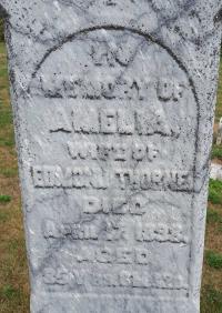 CemSearch: Name: Amelia Thorne; Born: - ; Died: Apr 17 1898; Age: 85; ID: WAITE083; Other names: Thorne, Edmond ( -1869); Cemetery: Waite Cemetery, Conc 4 Lot 11, Cramahe Twp., Sec A-W Row 1 Plot 10 (https://www.cemsearch.ca/burial/?pID=WAITE083%5E1.)7,13