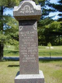 " .. Mrs. Alice Gertrude Ames .. " In Memorium, Wooler Pastoral Charge, 1951, Rev. W. G. Fletcher (Tweedsmuir Histories, Reel 1, I-184.)9,14,2 She was buried on 25 September 1951 at Mount Olivet Cemetery, Mount Olivet, Ontario; Memorial: (See Exhibit) Maurice Ames; 1873 - 1941; His Wife; Gertrude; McColl; 1874 - 1951; Their Daughter; Laura Drewry; 1908 - 1980; Their son; H. Howard; 1902 - 1962 (Mount Olivet Cemetery, Brighton Twp.)