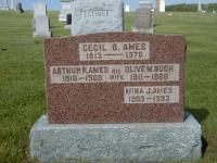Per burial.8,4 He was buried on 10 May 1970 at McPhail's Cemetery, Codrington, Ontario; See Exhibit. On Stone: Cecil B. Ames; 1913 - 1970; Arthur R. Ames; 1910 - 1988; His Wife; Olive M. Bush; 1911 - 1988; Mina J. Ames; 1905 - 1993