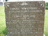 Samuel Y. Armstrong was born on 4 December 1826 at Leeds Co., Ontario; Date Dec 2 1826 & location Leeds Co. per Death Reg'n. Date Dec 1826 & location Ont. per 1911 Census. Date Dec 4 1826 per 1901 Census. Date 1826 & location CW per 1861 Census. Date 1826 & location Cda. per 1851 Census. Per "John Lawson Gerow" from George Gerow, August 19, 2001.2,3,1,4 He married Emily Borland before 1851 at Northumberland Co., Ontario; per 1851 Census.3 Samuel Y. Armstrong appeared on the census of 1851 at Cramahe Twp., Northumberland Co., Ontario; Age 25 at 1851 Census: Armstrong, Samuel, 25, b. Cda., WM, Blacksmith, married; Emily, 20, b. Cda., WM, married; Moses, 14; Gould, Matilda, 15.3 He appeared on the census of April 1861 at Cramahe Twp., Northumberland Co., Ontario; Age 35 at 1861 Census: Armstrong, Samuel, 35, b. CW, WM, Blacksmith, married; emily, 38, b. CW, WM, married; George, 8; Sarah, 6; Eliza, 5; Lucy, 2; Clark, Samuel, 20; Armstrong, Henrietta, 7; Foster, Sarah, 19.2 He appeared on the census of April 1871 at Cramahe Twp., Northumberland Co., Ontario; Age 44 at 1871 Census: Armstrong, Samuel, 44, b. Ont., Irish, WM, Blacksmith, married; Emily, 37, b. Ont., Eng., WM, married; George, 18, b. Ont., Irish, WM, clerk, single; Sarah, 16; emily, 14; Laura, 12; Frederick, 10; J.?(m), 8; John, 6 (1871 Census: Cramahe, div. 3, pg. 10, line 14 - Conc 7, Lot 33, 1/4 acres, owner.)5 He lived in April 1871 at Conc 7, Lot 33, Cramahe Twp., Northumberland Co., Ontario; Residence per 1871 Census: Conc 7, Lot 33, Cramahe Twp., 1/4 acre, owner.5 He appeared on the census of April 1891 at Cramahe Twp., Northumberland Co., Ontario; Age 64 at 1891 Census: Armstrong, Samuel, 64, b. Ontario, parents b. Ireland, Meth., blacksmith, married; Emily, 58, b. Ontario, parents b. Ontario, married; Frank W. R., 16.6 He appeared on the census of April 1901 at Cramahe Twp., Northumberland Co., Ontario; Age 74 at 1901 Census: Armstrong, Samuel, 74, b. Ontario Dec 4 1826, Irish, widower (father of Sarah Richards.)7 He appeared on the census of 1911 at Cramahe Twp., Northumberland Co., Ontario; Age 84 at 1911 Census: see Sarah Richards (daughter.)4 He died on 31 January 1915 at Warkworth, Northumberland Co., Ontario, at age 88; Death Reg'n.#023455: Name: Samuel Armstrong; Date: Jan 31 1915; Age: 88y 1m 28d; Res.: Warkworth; Born: Leeds Co; Status: widower; Parents: William Armstrong & Catherine Davis; Cause: ureamaic? poisoning, heart failure, 2 weeks; Phys.: C. C. Armstrong, MD; Inf.: C. C. Armstrong, Warkworth; Reg'd.: Feb 1 1915 (Ontario Death Registration, #023455-1915, ancestry.com.)8 He was buried on 2 February 1915 at Castleton Cemetery, Castleton, Northumberland Co., Ontario; Memorial: (See Exhibit) ARMSTRONG; Samuel Armstrong; Died Jan 31 1915, Aged 88 yrs; Emily Borland; Wife of; Samuel Armstrong; Born Mar 30 1833 - Died Dec 13 1893; And Their Children; Frances Ella; Born Dec 12 1863. Died Sep 3 1864; Jay Wilmington; Born Aug 26 1865. Died Sep 15 1899 (Castleton Cemetery, Cramahe Twp., Apr 29 2007.)9