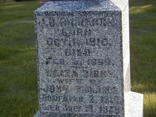 "Hugh Philp - born in Haldimand, Ont., moved from Shiloh to Welcome, Mar. 8, 1878, and to Port Hope in 1883.)" from page 61, "Ours To Remember", book by Mary Ann Down, given to me by Shirley (Goodfellow) Bird Sep. 3, 2004.1 He appeared on the census of April 1881 at Hope Twp., Durham East Co., Ontario; Age 47 at 1881 Census: Philp, Hugh, 47, b. Ont., Eng., Bible Christian, farmer, married; Hannah M., 46, b. Ont., Eng., Bible Christian, married; Harriet A., 20; Ada E., 18; Mary J., 16; Erletta G., 14; Charles K., 9; Estella M., 4 (familysearch.org.)6 He lived in 1883 at Port Hope, Durham Co., Ontario; "In 1883, they moved to Port Hope. There they lived on a small farm where they had a lot of fruit." from page 62, "Ours To Remember", book by Mary Ann Down, given to me by Shirley (Goodfellow) Bird Sep. 3, 2004.1 He lived in April 1901 at Conc 1 Lot 2, Hope Twp., Northumberland Co., Ontario; Residence per 1901 Census: Conc 1, Lot 2, Hope Twp.3 He appeared on the census of April 1901 at Hope Twp., Northumberland Co., Ontario; Age 67 at 1901 Census: Philp, Hugh, 67, b. Ont. Jul 13 1833, Eng., Meth., farmer, married; Hannah, 65, b. Ont. Jan 5 1835, Eng., Meth., married; Harriet, 38, b. Jan 25 1863, daughter; Ada, 36, b. Nov 15 1864, daughter; Gertrude, 32, b. Aug 12 1866, daughter; Charles F., 29, b. Apr 8 1871, son; Watt, Elmo, 4, b. Ont., Irish, Meth., grandson (1901 Census Online: Hope Twp., dist. 55, sub-dist. b-1, page 4, line 38, T-6464 - Conc 1, Lot 2.)3 He died on 20 February 1902 at Port Hope, Durham Co., Ontario, at age 67; Date Feb 20 1902 per Burial. Date Feb 20 1902 from page 47 of "Ours To Remember" by Mary Ann Down, given to me by Shirley (Goodfellow) Bird Sep. 3, 2004.1,2 He was buried on 22 February 1902 at Welcome United Cemetery, Port Hope, Durham Co., Ontario; Memorial: (See Exhibit) In Memory of; Hugh Philp; Born In; Haldimand Tp. 1834; Died at Port Hope; Feb 20 1902; Aged 78 yrs. 7 Mos; Hiw Wife; Hannah M; Fiddick; Born Haldimand Tp; Jan 5 1835; Died at Port Hope; Sep 26 1910 (Welcome Cemetery, Sep 3, 2004)