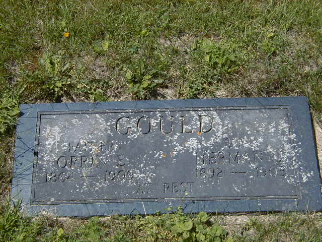 CEMSearch: Name: Orrin E. Gould; Born: 1864; Died: 1909-09-15; Notes: Bon in Ontario, father of Herman J. died of typhoid fever; Buried: Port Hope Union Cemetery; Other names: Herman J. Gouild (1892-1903.)1,9