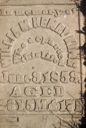 "Sarah Ann and William’s marriage seemed rocky almost from the start, and the baby, George Henry King, died at the age of two months and 2 days, which apparently caused more discord. The baby, malformed at birth, died on 18 March 1854, which would make his birth on 16 Jan. 1854. The death date and the age was found on the grave marker in Mt. Hope Cemetery. The inscription carries no mention of the name King; only “son of the above”, which referred to his mother’s name and death date, along with the names of her parents." from the Mitchell, Higgins, Parr and Lawson Book, pg. 249, Brighton Public Library, Sep 21 2013.1 He was buried on 20 March 1854 at Mount Hope Cemetery, Brighton, Northumberland Co., Canada West; Memorial: (See Exhibit) In memory of our ?; Sarah Ann; ? Daughter of; John M. & Elizabeth J. Lawson; Died; Nov 4, 1858; Aged 25 yrs 9 mos 25 d; Also; George Henry; Son of the above; Died; March 18, 1854; Aged 2 mo's 6 d (Mount Hope Cemetery, Brighton.)