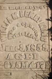 He was buried on 12 June 1859 at King Farm, Codrington, Northumberland Co., Canada West; Memorial: (See Exhibit) In Memory of; William Henry King; Who Departed This Life; June 9, 1859; Aged; 26 Y. 5 M. & 17 D (King/Ames/Buchanan Home, buried at south east corner of the house - Dan Buchanan)