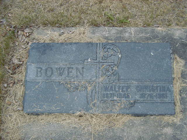 Note: The child is clearly named and is shown as a male. This must be Margaret. All other census records show her in this place.6 He lived in 1897 at New Liskeard, Timiskaming District, Ontario; " ... she came north to New Liskeard at the age of six years with her parents, Mr. and Mrs. Walter Bowen." Per Obituary. He lived in April 1901 at Conc 5 Lot 8, Hudson Twp., Timiskamning Co., Ontario; 1901 Census shows Walter Bowen and family at Conc 5, Lot 8 of Hudson Twp. in what was then part of Nipissing District, later to become Timiskaming District. He appeared on the census of April 1901 at Dymond & Hudson Twp., Nipissing District, Ontario; Age 33 at 1901 Census: Bowen, Walter, 33, b. Ontario 7 Jan 1868, Irish, Meth., farmer, married; Christina, 27, b. Ontario 11 Feb 1874, Scot., married; Margaret, 9, b. 8 Feb 1891, Irish; Della, 7, b. 28 Dec 1893; Maud, 4, b. 20 May 1896; Lena, 3, b. 18 Mar 1898; Walter, 1, b. 23 Mar 1890; McChesney, Samuel, 63, b. Scotland 10 June 1837, widower, emigrated 1847, Scot., Meth. (Pg. 3, Line 12: Conc 5, Lot 8, 256 acres, 1 family, 3 rooms.)7 He appeared on the census of 1911 at Dymond Twp., Timiskaming Dist., Ontario; Age 43 at 1911 Census: Bowen, Walter, 43, b. Ont. Jan 1868, Scot., Bapt., farmer, married; Crhistina, 37, b. Ont. Feb 1874, Scot., Bapt., married; Della, 17, b. Dec 1893; Loc.: G?? Lake?, daughter, domestic; Walter C., 11, b. Mar 1900, son; Elizabeth, 9, Sep 1902, daughter; Dorothy F., 8, b. Nov 1903, daughter; Merton L., 5, b. Mar 1906, son; Albert F., 2, Mar 1909, son; Edna V. E., 7/12, b. Oct 1910, daughter (1911 Census Online: Dymond Twp., Timiskaming Dist., pg. 11, line 39.)8 He lived on 15 September 1914 at New Liskeard, Timiskaming District, Ontario; Informant for Death Reg'n. of granddaughter Francis Angeline Ames. He "Hudson: A large number from this vicinity were in town on Saturday, being as follows: Mr. and Mrs. John Bumstead... Mr. Frank Ames, Mr. Walter Bowen ... " from The New Liskeard Speaker, January 26, 1933, seen on microfilm at The Ontario Archives, March 1, 2001 on 26 January 1933 at Hudson Twp., Ontario. He lived on 27 August 1936 at Hudson Twp., Timiskaming District, Ontario; Voters List 1936: Conc: 4, Lot 6, N 1/2; Bowen, Walter, Married; Owner; New Liskeard, R. R. 1; ME LA (Voters List of Hudson Twp., August 27, 1936, from Appendix B-3 of I've got to stop here until I'm called for: Chronicles of Hudson Township.) He died on 8 May 1945 at Timiskaming District, Ontario, at age 77; Per Carolyn O'Neil's Ames/Bowen Doc, from Boyd Ames, New Liskeard, July 20, 2001. He was buried on 10 May 1945 at Pioneer Cemetery, New Liskeard, Timiskaming District, Ontario; Memorial: (See Exhibit) BOWEN; Walter; 1871 - 1945; Christina; 1876 - 1961 (Pioneer Cemetery, New Liskeard, July 1, 2005)