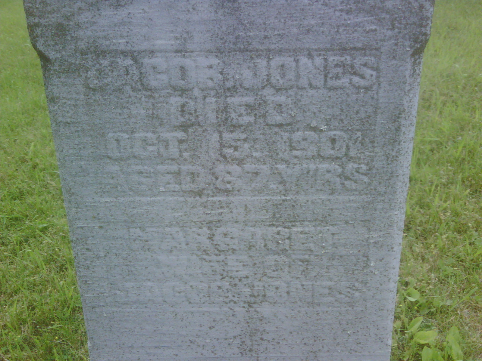 Margaret Dingman was born in 1832 at Cramahe Twp., Northumberland Co., Ontario; Date 1832 & location Ont. per 1891 Census. Date 1832 & location Ont. per 1881 Census. Date 1832 & location Ont. per 1871 Census. Date 1833 & location UC per 1861 Census. Date 1832 & location Cda. per 1851 Census. Date 1832 & location Cramahe per marriage register.1,2,3,4,5,6 She appeared on the census of 1850 at Cramahe Twp., Northumberland Co., Ontario; 1850 Census: 1 of 2 single females 14 to 30 - see Peter Dingman. She appeared on the census of 1851 at Cramahe Twp., Northumberland Co., Ontario; Age 19 at 1851 Census: Dingman, Margaret, 19, b. Cda. (shown under John Bound - alone.)7 She appeared on the census of April 1861 at Brighton Twp., Northumberland Co., Ontario; Age 28 at 1861 Census: see Peter Dingman.8 As of 9 January 1865,her married name was Jones. She married Jacob Jones, son of Robert Jones and Olive Elizabeth Wilbert, on 9 January 1865 at Brighton Twp., Northumberland Co., Ontario; County Marriage Register: Jacob Jones, 50, Brighton, Prince Edward, son of Robert & Olive, married 9 Jan 1865, Margaret Dingman, 33, Brighton, Cramahe, daughter of Peter & Margaret (Cobourg Public Library, April 10, 2002.) Margaret Dingman appeared on the census of April 1871 at Cramahe Twp., Northumberland Co., Ontario; Age 39 at 1871 Census: see Jacob Jones.3 She appeared on the census of April 1881 at Cramahe Twp., Northumberland Co., Ontario; Age 49 at 1881 Census: see Jacob Jones.4 She appeared on the census of April 1891 at Brighton Twp., Northumberland Co., Ontario; Age 59 at 1891 Census: see Jacob Jones.6 She died on 28 May 1918 at Orland, Northumberland Co., Ontario; per "Family of Samuel Dingman of Cramahe", sent to me by Richard Hughes, Sept. 11, 2003. She was buried on 30 May 1918 at Cramahe Hill Cemetery, Morganston, Northumberland Co., Ontario; Memorial: (See Exhibit) Jacob Jones; Died; Oct. 15, 1901; Aged 87 Years; Margaret; Wife of; Jacob Jones (Cramahe Hill Cemetery, Morganston, Jul 17 2009.)9