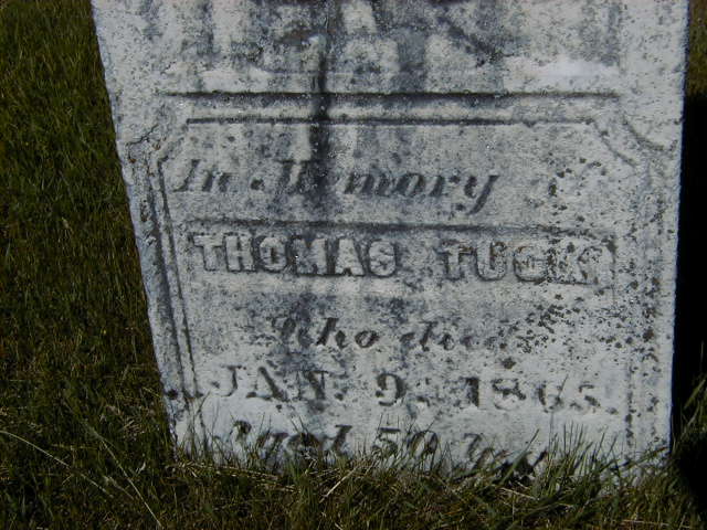 CemSearch: Name: Thomas Tuck; Born: - ; Died: 1865-01-09; Age: 50y; Buried: Eddystone Cemetery, Haldimand, Conc 4, Lot 17; No other names.4,5