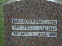 William John Arthur Consul was born on 20 June 1908 at Brighton, Northumberland Co., Ontario; Date Jun 20 1908 & location Brighton per family tree of ShelleyMoore36 on ancestry.com, June 13, 2011. per The McColl Clan: Scotland to Canada, by Leona M. Austin.1 He married Mabel Kathleen McColl, daughter of William Allister "Willie" McColl and Beatrice Ardella Bryant, before 1936 at Ontario; per family tree of ShelleyMoore36 on ancestry.com, June 13, 2011.1 William John Arthur Consul died on 8 June 1979 at New Wesminster, British Columbia, at age 70; per family tree of ShelleyMoore36 on ancestry.com, June 13, 2011.1