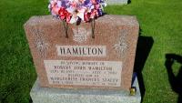 Marguerite Frances Stacey was born on 1 March 1930; Date Mar 1 1930 per Memorial. per The McColl Clan: Scotland to Canada, by Leona M. Austin.1 As of after 1950,her married name was Hamilton. She died on 14 October 2009 at age 79; Date Oct 14 2009 per Memorial.1 She was buried on 17 October 2009 at McPhail's Cemetery, Brighton Twp., Northumberland Co., Ontario; Memorial: (See Exhibit) HAMILTON; Robert John Hamilton; Sept. 10, 1953 - July 2, 2007; Beloved Son of; Marguerite Frances Stacey; mar 1, 1930 - Oct 14, 2009 (McPhail's Cemetery, Brighton Twp., June 7 2017.)1