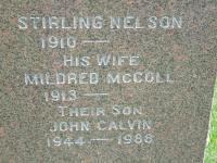 Mildred Alida McColl was born in 1913 at Ontario; Date 1913 per Memorial. per The McColl Clan: Scotland to Canada, by Leona M. Austin.1 As of after 1933,her married name was Nelson. She married Stirling Ward Nelson, son of Thomas "Garrat" Nelson and Lydia Maria Asseltine, after 1933 at Ontario. Mildred Alida McColl was buried in 2007 at Wooler Friends Cemetery, Brighton Twp., Northumberland Co., Ontario; Memorial: (See Exhibit) Stirling Nelson; 1910 - ; His Wife; Mildred McColl; 1913 - ; Their Son; John Calvin; 1944 - 1988 (Wooler Friends Cemetery, Brighton Twp., June 30, 2008.)2,1 She died in 2007 at Ontario; Date 2007 per family tree of beedunkley1 on ancestry.ca, Feb 27 2018.2