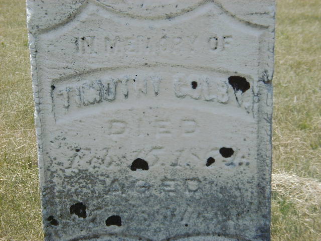 Deborah Simpson was born on 18 February 1803 at Cramahe Twp., Northumberland Co., Upper Canada; Date Feb 18 1803 per Death Reg'n. Date 1803 & location Ont. per 1891 Census. Date 1803 & location Ont. per 1881 Census. Date 1803 per 1871 Census. Date 1804 & location Canada per 1850 Census. Date 1800 & location CW per 1861 Census. Location per settled March 1796 - CEMSearch record of Mary (Lord) Simpson. per GEDCOM of Mary Kaiser, Sep 9, 2002.1,2,3,4,5,6 She married Daniel Johnson, son of Isaac Johnson and ? ?, before 1820 at Cramahe Twp., Northumberland Co., Upper Canada; per 1821 Murray Twp. Cencus Record. Eldest son John shown in 1850 Census born in Canada.3 As of before 1822,her married name was Johnson. Deborah Simpson lived on 21 March 1823 at Conc 4 Lot 7, Cramahe Twp., Northumberland Co., Upper Canada; Land Registry Records (B&S 1015) show that John Simpson sold 50 acres of the north east quarter of lot 7, conc 4, Brighton Twp., Northumberland Co. to Deborah Johnson. ITS Date: Mar 21 1823. Reg'n. Date: Apr 12 1823. (Ontario Land Registry Records, Northumberland Co., Brighton Twp., Conc 4, pg. 138 of 346, page copied from OnLand.ca by Dan Buchanan, Sep 28 2021.)7 She lived on 2 January 1838 at Conc 4 Lot 7, Cramahe Twp., Northumberland Co., Upper Canada; Land Registry Records (B&S 5479) show that D. Johnson & Deborah Johnson sold 50 acres in the north east quarter of lot 7, conc 4, Cramahe Twp., Northumberland Co. to John Vanwicklen. ITS Date: Jan 2 1838. Reg'n. Date: Apr 10 1839. (Ontario Land Registry Records, Northumberland Co., Brighton Twp., Conc 4, pg. 138 of 346, page copied from OnLand.ca by Dan Buchanan, Sep 28 2021.)7 She appeared on the census of 12 September 1850 at Greece, Monroe Co., New York, U.S.A; Age 46 at 1850 Census: see Daniel Johnson.3 As of circa 1854,her married name was Colby. She married Timothy Colby circa 1854 at Cramahe Twp., Northumberland Co., Canada West; 2nd wife of Timothy Colby - per grave stone of 1st wife Sarah.8 Deborah Simpson appeared on the census of April 1861 at Cramahe Twp., Northumberland Co., Canada West; Age 61 at 1861 Census: see Timothy Colby.1 She appeared on the census of April 1871 at Cramahe Twp., Northumberland Co., Ontario; Age 68 at 1871 Census: see Timothy Colby.2 She appeared on the census of April 1881 at Cramahe Twp., Northumberland Co., Ontario; Age 78 at 1881 Census: Colby, Deborah, 78, b. Ont., Eng., Christian, widow; Johnson, Mary E., 25, b. USA, Eng., Christian, single (familysearch.org.)6 She appeared on the census of April 1891 at Cramahe Twp., Northumberland Co., Ontario; Age 88 at 1891 Census: see William H. Johnson (son.)5 She died on 16 March 1892 at Cramahe Twp., Northumberland Co., Ontario, at age 89; Death Reg'n. #012464: Name: Deborah Colby; Date: Mar 16 1892; Place: Cramahe Twp; Age: 89 years, 27 days; Cause: old age: Inf.: T. J. Johnson, Colborne; Reg'd.: Mar 16 1892 (Ontario Death Registration, #012464-1892, ancestry.com) (Initially, image of reg'n sent to me via email by Mary Koon, Apr 28, 2006)