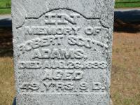 Robert Scott Adams was born on 16 August 1844 at Ameliasburgh Twp., Prince Edward Co., Canada West; Date Aug 16 1844 & location Prince Edward Co. per Death Reg'n. & Memorial - age 49y 9d at death Aug 25 1893. IGI Record. Date 1844 & location Ont. per 1881 & 1891 Census. Date 1846 & location Ont. per 1871 Census. Date 1843 & location Cda. per 1851 Census.1,2,3,4,5,6,7 He "Robert Scott, son of Robert and Isabella, had a daughter Blanche who married Delbert Snider. They lived on the Ezra Bonter farm on the upper 2nd Conc. Issue: Ray, Wilford, Walter & Ross." pg. 631, Adams Family, 7th Town/Ameliasburgh