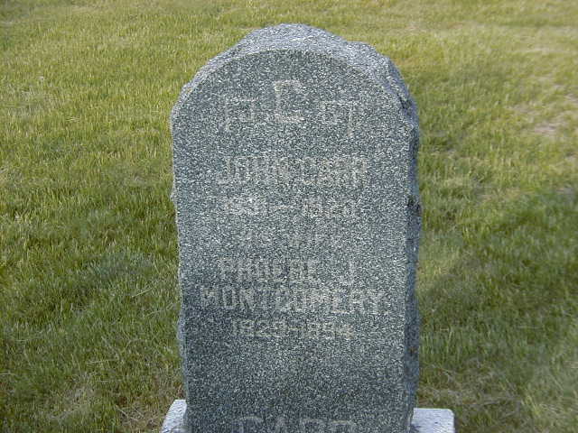 per GEDCOM of Cheryl Kemp Taber, June 4, 2007.5,7 John Carr died in 1920 at Brighton Twp., Northumberland Co., Ontario; Date 1920 & location Brighton Twp. per GEDCOM of Cheryl Kemp Taber, June 4, 2007.5 He was buried in 1920 at McPhail's Cemetery, Brighton Twp., Northumberland Co., Ontario; Memorial: (See Exhibit) John Carr; 1831? - 1920; His Wife; Phoebe J; Montgomery; 1829 - 1894 (McPhail's Cemetery, Brighton Twp., May 21 2004)
