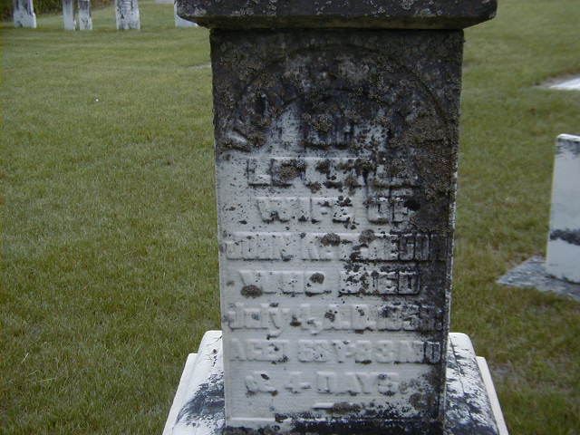Letitia Calverley was born on 30 March 1790 at Nova Scotia; Date March 30 1790 per calc from Memorial - age 68y 3m 4d at death Jul 4 1858.1,2 She married John Ketcheson, son of William Ketcheson and Mary Rull, before 1808 at Upper Canada; per birth date of daughter Maria.1,2 As of after 1810,her married name was Ketcheson.1 Letitia Calverley died on 4 July 1858 at Hastings Co., Ontario, at age 68; Date Jul 4 1858 per Memorial.1,2 She was buried on 6 July 1858 at Longwell Cemetery, Sidney Twp., Hastings Co., Ontario; Memorial: (See Exhibit) In Memory; Of; Letitia; Wife of; John Ketcheson; Who Died; July 4, A.D. 1858; Aged 68 Y'rs 3 mos; & 4 Days (Longwell Cemetery, Sidney Twp., June 22, 2006.)2