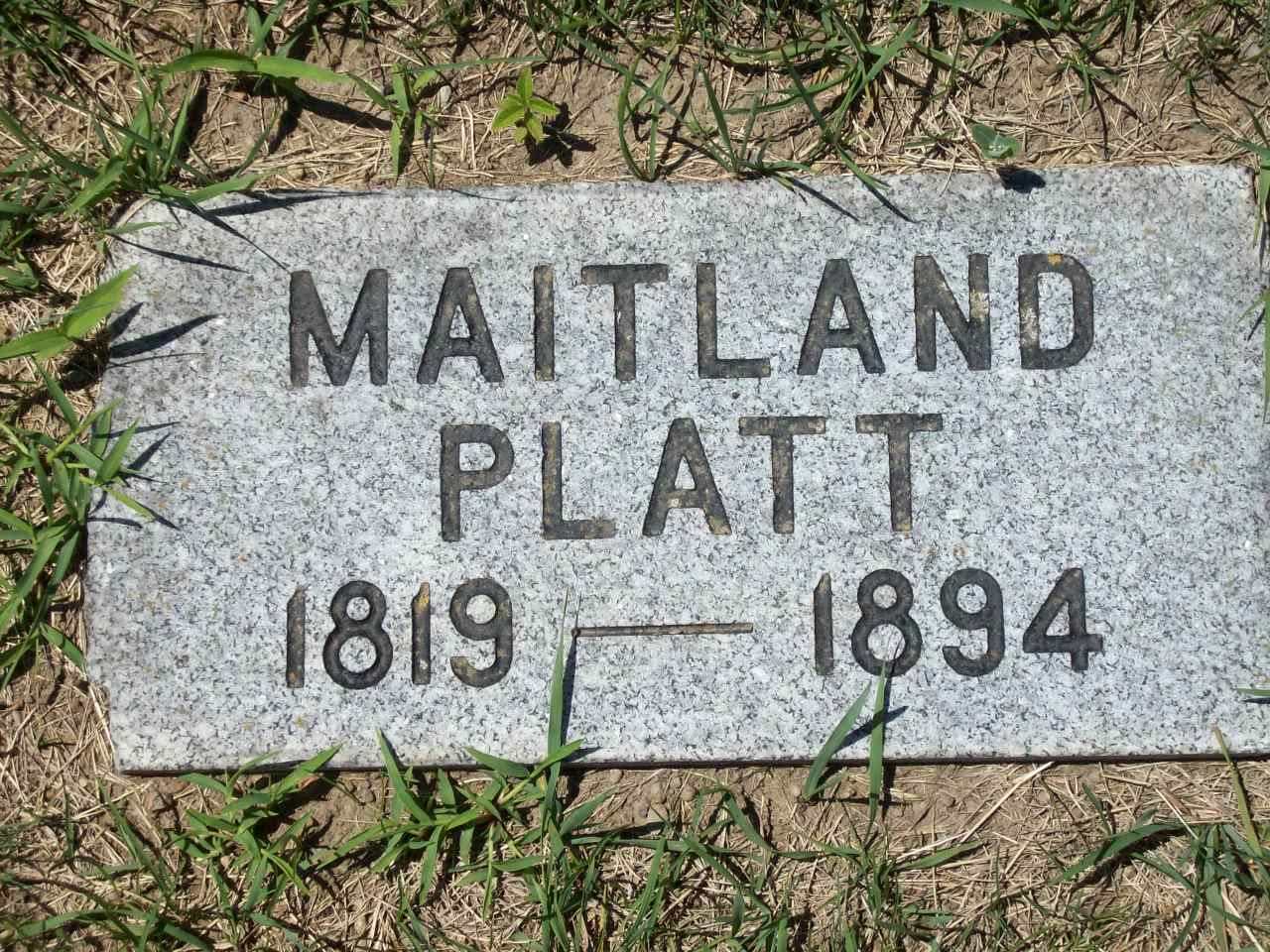 Date 1894 per Burial. per GEDCOM of Doug Norman, June 12, 2004.1,3,8 He was buried on 22 July 1894 at Warkworth Cemetery, Warkworth, Northumberland Co., Ontario; CEMSearch: Name: Maitland Platt; Born: 1819; Died: Jul 20 1894; Age: 75y; ID: WRKWTHDP11; Other names: Ketcheson, Annie [Platt] (1858-1884), Ketcheson, Florence Matilda (1884-1884), Platt, Charles Benjamin (1854-1923), Platt, Frederick M. (1895-1981),