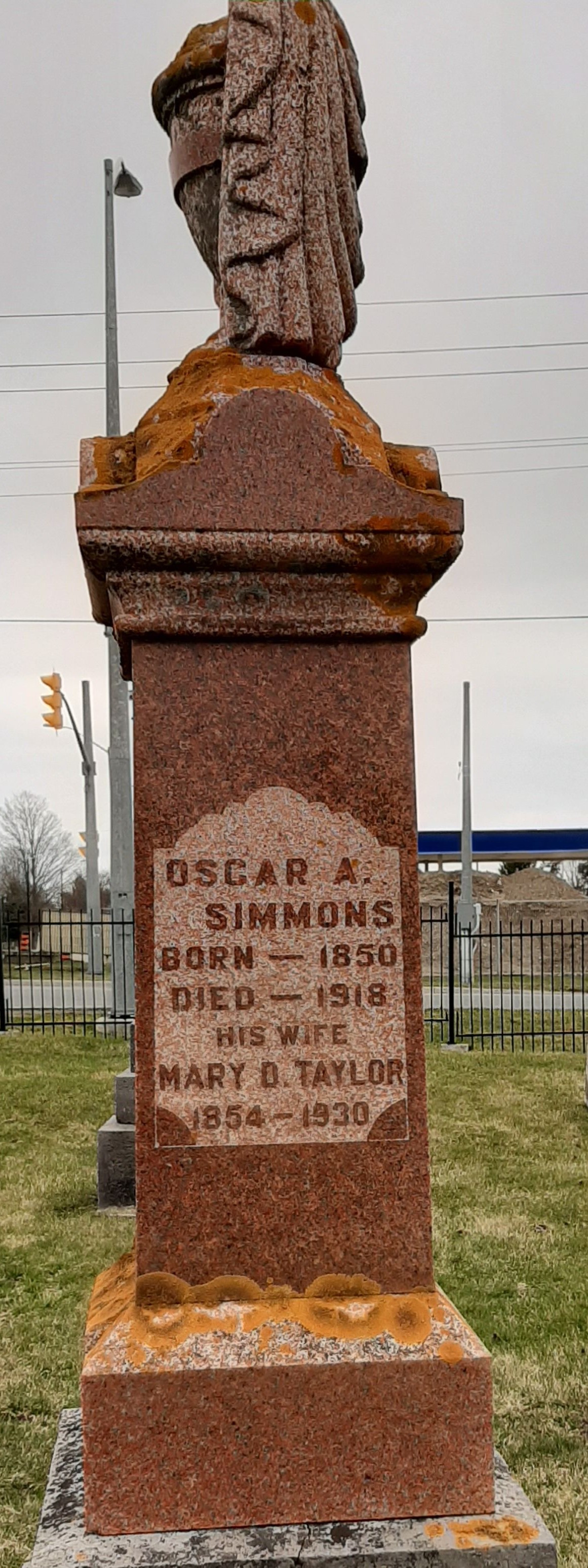 FindaGrave: Name: Oscar A Simmons; BIRTH: 1850; DEATH: 1918 (aged 67–68); BURIAL: Colborne Union Cemetery, Colborne, Northumberland County, Ontario, Canada; MEMORIAL ID: 182522945 (https://www.findagrave.com/memorial/182522945/oscar-a-simmons?_gl=1*pvmi3r*_gcl_au*MTg0NDkwNTU3Mi4xNzA2NjI0OTQ3*_ga*NTYwMjIyMjkyLjE2NzQ5Mzg5MDg.*_ga_4QT8FMEX30*NTJkZmRiNWEtY2NhYy00ODM2LTkzNjktMDhjZWIzMjA0MzRhLjkxNC4xLjE3MTA1OTUzMzguMzguMC4w*_ga_QPQNV9XG1B*NTJkZmRiNWEtY2NhYy00ODM2LTkzNjktMDhjZWIzMjA0MzRhLjQ0NS4xLjE3MTA1OTUzMzguMC4wLjA.)