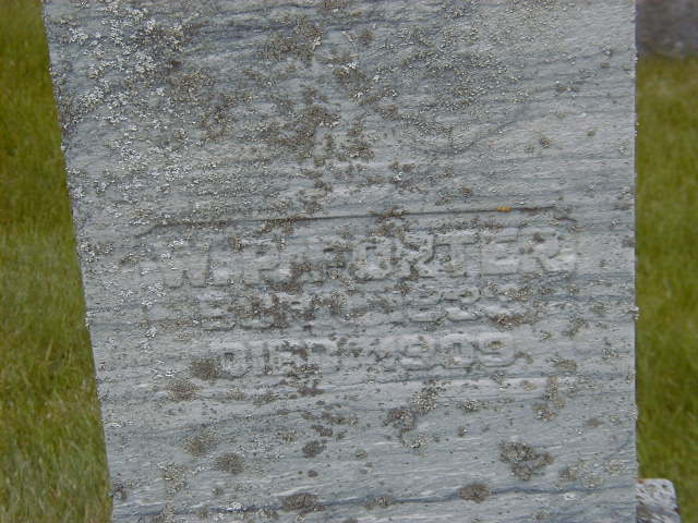 W. P. Porter was born in 1833 at Cramahe Twp., Northumberland Co., Upper Canada; Date 1833 per Burial. per GEDCOM of Roxanne Munns, Aug 22, 2004.1,2 He was buried in 1909 at Union Cemetery, Colborne, Northumberland Co., Ontario; Memorial: (See Exhibit) W. P. Porter; Born 1833; Died 1909 (Union Cemetery, Colborne, May 22, 2005)