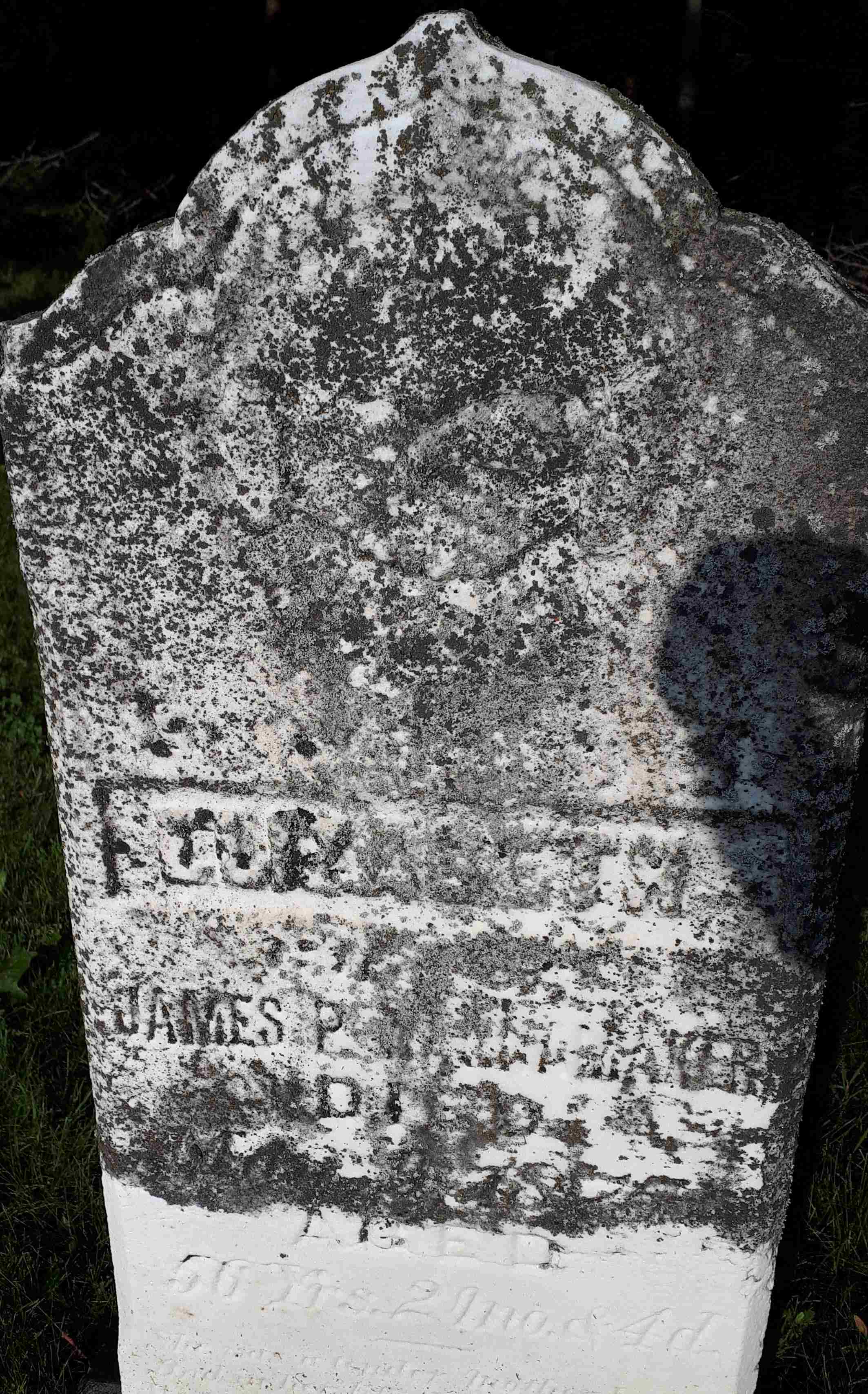 Elizabeth Graham was born on 5 March 1819 at Ireland; Date Mar 5 1819 per Memorial - age 56y 2m 4d at death May 9 1875. Date 1817 & location Ireland per 1851 Census. Date 1819 & location Ireland per family tree of BrawleyD on ancestry.ca, Oct 27 2022. per GEDCOM of Barbara Lenker, Dec. 1, 2004.1,3,4,2 As of 10 February 1836,her married name was Wannamaker.1 She married James Peter Wannamaker, son of Peter W. Wannamaker and Mary Jones, on 10 February 1836 at Upper Canada; Date Be 10 1836 per family tree of Lisa Kirschenman on ancestry.ca, Aug 12 2023. Date Feb 10 1836 per family tree of BrawleyD on ancestry.ca, Oct 27 2022. per GEDCOM of Barbara Lenker, Dec. 1, 2004.1,3 Elizabeth Graham appeared on the census of 1851 at Percy Twp., Northumberland Co., Canada West; Age 34 at 1851 Census: see James P. Wannamaker.2 She appeared on the census of April 1861 at Percy Twp., Northumberland Co., Canada West; Age 42 at 1861 Census: see James Wanamaker.5 She died on 9 May 1875 at Ontario at age 56; Date May 9 1875 per Memorial. Date May 9 1875 per family tree of BrawleyD on ancestry.ca, Oct 27 2022.3,4 She was buried on 11 May 1875 at Carman Cemetery, Brighton Twp., Carman, Northumberland Co., Ontario; Memorial: (see Exhibit) Elizabeth; Wife of; James P. Wannamaker; Died; May 9, 1875; Aged; 56 Yrs. 2 Mos. & 4 d. (Carman Cemetery, Brighton Twp., image by Dan Buchanan, Aug 12 2023.)4