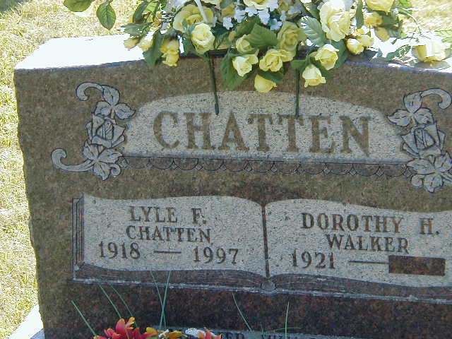 CEMSearch: Name: Lyle F. Chatten; Born: 1918; Died: - ; Notes: Husband of Dorothy M. Walker; Buried: Salem Cemetery, Sec NE; Other name: Dorothy M. Chatten (Walker)(1921-.6,7 )