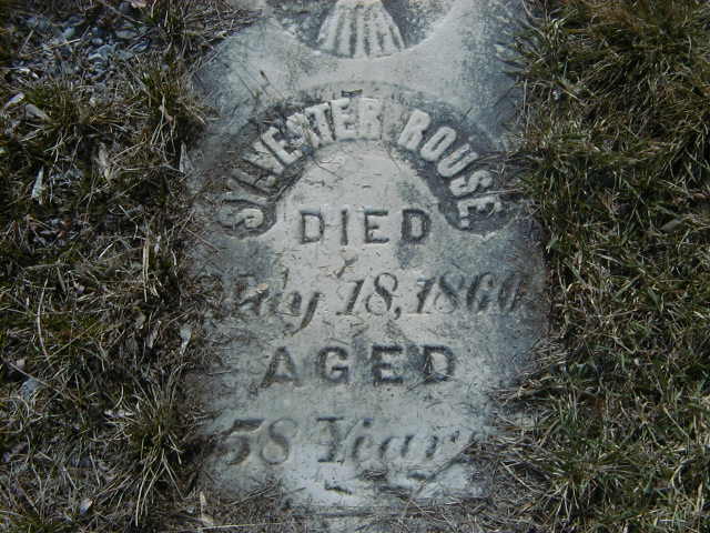 Sylvester Rouse was born in 1802 at Rouses Parish, Utica Co., New York, U.S.A; Date 1802 per Memorial. Date 1806 & location USA per 1851 Census. Location Utica, NY per Death Reg'n. of son Hiram Rouse. Date 1802 & location Rouses Parish, Utica, NY per GEDCOM of Cheryl (Kemp) Taber, Jun 6 2012.1,3,4,5 He married Sarah Ann Milligan, daughter of Peter Milligan and ? ?, before 1831 at Northumberland Co., Upper Canada; per 1851 Census. Sylvester Rouse appeared on the census of 1839 at Cramahe Twp., Northumberland Co., Upper Canada; 1839 Census: Sylvester Rouse; 1 male under 16; 2 males over 16; 3 females under 16; 1 female over 16. He lived on 9 May 1839 at Conc 2 Lot 10, Cramahe Twp., Northumberland Co., Upper Canada; Land Registry Records (Grant 290) show that Isaac Palmer sold 100 acres of the west half of lot 10, concession 2, Cramahe Twp., Northumberland Co. to Sylvester Rouse. ITS Date: May 9 1839. Reg'n.: Date: Jun 20 1856. (Ontario Land Registry Records, Northumberland Co., Brighton Twp., Conc 02, pg. 141 of 317, page copied from OnLand.ca by Dan Buchanan, Apr 11 2020)