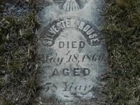 Note: Catherine Rouse, age 36 is near top of this page, Bennett names above.1 He lived on 15 August 1857 at Conc 3 Lot 10, Brighton Twp., Northumberland Co., Canada West; Land Registry Records (B&S C323) show that Daniel R. Bedell sold "the south quarter" of lot 10, concession 3, Brighton Twp., Northumberland Co. to Sylvester Rouse. ITS Date: Aug 15 1857. Reg'n.: Date: Dec 29 1865. (Ontario Land Registry Records, Northumberland Co., Brighton Twp., Conc 03, pg. 192 of 320, page copied from OnLand.ca by Dan Buchanan, Apr 13 2020.)6 He died on 18 May 1860 at Brighton Twp., Northumberland Co., Canada West; Date May 18 1860 per Burial. Wife is widow in 1861 Census & daughter born in 1855.7,3 He was buried on 20 May 1860 at Woods Cemetery, Cramahe Twp., Northumberland Co., Canada West; Memorial: (See Exhibit) Sylvester Rouse; Died; Mary 18, 1860; 58 Years (Woods Cemetery, Cramahe Twp., Apr 2, 2006.)3