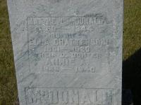 Note: Not sure of the location refered to here. at Brighton Twp., Northumberland Co., Ontario.5 He was born on 20 June 1860 at Cramahe Twp., Northumberland Co., Canada West; Date 1860 per Memorial. Date June 1861 & location Ont. per 1911 Census. Date Jun 20 1861 & location Ont. rural per 1901 Census. Date 1862 & location Ont. per 1891 Census. Date 1861 & location Ont. per 1881 Census. Date 1862 & location Ont. per 1871 Census. Date Jun 20 1860 & location Ont. per family tree of jleverden on ancestry.com May 26 2013.1,6,4,7,8,2,3,9 He appeared on the census of April 1871 at Cramahe Twp., Northumberland Co., Ontario; Age 9 at 1871 Census: see Wilson McDonald.9 He appeared on the census of April 1881 at Cramahe Twp., Northumberland Co., Ontario; Age 20 at 1881 Census: see Wilsom A. McDonald.3 He lived on 23 October 1883 at Cramahe Twp., Northumberland Co., Ontario; Residence Cramahe Twp. per marr. reg'n.4 He married Ella Chatterson, daughter of Elias Chatterson and Amanda Milligan, on 23 October 1883 at Colborne, Northumberland Co., Ontario; Marriage Reg'n.#008131: Groom: Matthew McDonald; Age; 23; Res. & Born: Cramahe Twp; Status: bachelor; Occ.: yeoman; Parents: Wilson & Temperance McDonald; Bride: Ella Chatterson; Age: 21; Res.: Haldimand Twp; Born: Brighton Twp; Status: spinster; Parents: Elias & Amanda Chatterson; Wit.: Mary Ann McCurdy, Cannifton & Mary A. Maybee, Colborne; Date: Oct 23 1883; Place: Colborne; Rel.: Meth; Performed by: Rev. W. J. Maybee (Ontario Marriag Registration, #008131-1883, ancestry.com.)1,10 Matthew A. McDonald appeared on the census of April 1891 at Cramahe Twp., Northumberland Co., Ontario; Age 29 at 1891 Census: McDonald, Mathew, 29, b. Ont., p.b. Ont., Meth., farmer, married; Ellen, 29, b. Ont., p.b. Ont., Meth., married; Mirtle, 6; Annie, 2 (1891 Census: Cramahe Twp., Northumberland Co., dist. 98, sub-dist. e-2, pg. 2, line 6 - ancestry.com.)7 He lived between 1900 and 1913 at Conc 1, Lot 34, Brighton Twp., Spring Valley, Northumberland Co., Ontario; "Matthew McDonald o Grist Mill - Grist & buckwheat flour- 1900 - 1913 - Spring Valley" from page 193 of History of Brighton Businesses by Susan Brose.5 He lived in April 1901 at Conc 1 Lot 34, Brighton Twp., Northumberland Co., Ontario; Residence per 1901 Census: Conc 1, Lot 34, north west 1/4.1 He appeared on the census of April 1901 at Brighton Twp., Northumberland Co., Ontario; Age 39 at 1901 Census: McDonald, Matthew, 39, b. Ont. Jun 20 1861, Scot., Grist Miller, M., married; Ella, 39, b. Ont. Apr 17 1862, Scot., M., married; Myrtle, 16, b. Jun 17 1889, daughter; Anni, 12, b. Aug 13 1888, daughter (1901 Census Index & Image Online: a-2, pg. 9, line 3, T-6485.)1 He lived on 6 June 1901 at Conc 1 Lot 34, Brighton Twp., Northumberland Co., Ontario; Land Registry Records (Power of Sale Grant 6940) show that "Ham. Prov. & Loan Society" registered a "Power of Sale Grant" for 50 acres on the north west quarter of lot 34, conc 1, Brighton Twp., Northumberland Co. to Matthew McDonald for $1,125. ITS Date: Jun 6 1901; Reg'n. Date: Jun 12 1901. (Ontario Land Registry Records, Northumberland Co., Brighton Twp., Conc 01, pg. 277 of 307, page copied from OnLand.ca by Dan Buchanan, Oct 5 2021)