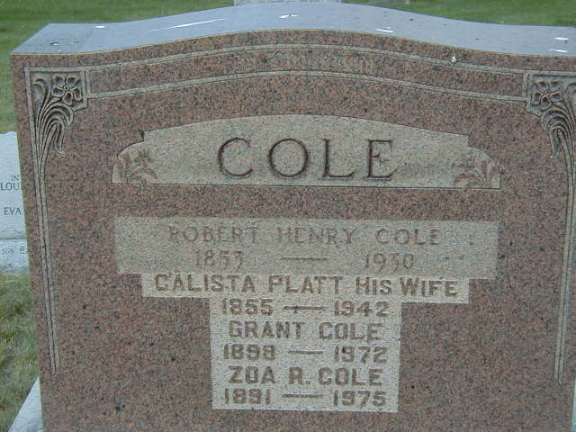 William Grant Cole was born on 26 June 1896 at Brighton Twp., Northumberland Co., Ontario; Birth Reg'n.# : Name: Wiliam Grant Cole; Date: Jan 26 1898; Parents: Robert Cole & Calista Platt... pg 2 missing .. (Ontario Birth Registration, #... , ancestry.com) Date Jun 26 1896 per 1901 Census. Date 1896 per Burial.1,3,4 He appeared on the census of April 1901 at Brighton Twp., Northumberland Co., Ontario; Age 4 at 1901 Census: see Robert Cole.3 He appeared on the census of June 1911 at Brighton Twp., Orland, Northumberland Co., Ontario; Age 13 at 1911 Census: see Robert Cole.5 He lived on 14 February 1917 at Brighton Twp., Codrington, Northumberland Co., Ontario; Witness at marriage of his sister Eva (Cole) Morrow.6 He lived on 26 October 1921 at Brighton Twp., Codrington, Northumberland Co., Ontario; Witness at marriage of niece Lilly (Hazelwood) Wright.6 He lived circa 1930 at Brighton Twp., Orland, Northumberland Co., Ontario; Grant Cole appears in The Latimer Photos which were take by Hugh Latimer during the late 1920s and early 1930s at his father's General Store at Orland. (The Latimer Photos, Codrington Public Library.7 He lived on 29 August 1964 at Brighton Twp., Codrington, Northumberland Co., Ontario; Survived by - per Death Notice of sister Nora Mae (Cole) Hazelwood - from The Tweedsmuir Histories of Codrington copied from microfilm at The Metro Toronto Reference Library, Nov 2007.8 He died on 26 March 1972 at Ontario at age 75; Date 1971 per Burial. Date Mar 26 1972 per family tree of snes1 on ancestry.con, Nov 28 2012.1,2 He was buried on 28 March 1972 at McPhail's Cemetery, Brighton Twp., Northumberland Co., Ontario; Memorial: (See Exhibit) COLE; Robert Henry Cole; 1853 1930-; Calista Platt His Wife; 1855 - 1942; Grant Cole; 1898 - 1972; Zoa R. Cole; 1891 - 1975 (McPhail's Cemetery, Brighton Twp., June 4, 2005.)1