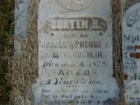 Burten H. McLaughlin was born in October 1870 at Brighton Twp., Northumberland Co., Ontario; Date Oct 1870 per Burial.1 He died on 6 January 1872 at Brighton Twp., Northumberland Co., Ontario, at age 1; Date Jan 6 1872 per Burial.1 He was buried on 8 January 1872 at McPhail's Cemetery, Brighton Twp., Northumberland Co., Ontario; Memorial: (See Exhibit) Burten H; Son of; James & Pheobe A; McGloughlin; Died Jan 6, 1872; Aged 1 years 3 Mos. (McPhail's Cemetery, Brighton Twp., June 6, 2005.)1