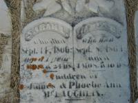 James C. McLaughlin was born on 29 April 1864 at Brighton Twp., Northumberland Co., Ontario; Date Apr 29 1864 per Burial.1 He died on 8 September 1864 at Brighton Twp., Northumberland Co., Ontario; Date Sep 8 1864 per Burial.1 He was buried on 10 September 1864 at McPhail's Cemetery, Brighton Twp., Northumberland Co., Ontario; Memorial: (See Exhibit) Sarah L; Who Died; Sep 14 1866; Aged 1 year; 3 Mos. & 24 Dys; James C; Who Died; Sep 8 1864; Aged; 1 Mos. & 10 dys; Children of; James and Pheobe Ann; McGlaughlin (McPhail's Cemetery, Brighton Twp., June 6, 2005.)1