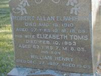 CEMSearch: Name: William Henry Elmhirst; Born: - ; Died: 1897-12-27; Age: 15d; Notes: Son of Robert Elmhirst and Elizabeth Toms; Buried: Norwood-Asphodel Cemetery, Norwood, Sec A Row 12; Other names: Elizabeth Elmhirst (Toms) ( -1953), Robert Allan Elmhirst ( -1910.)1,4