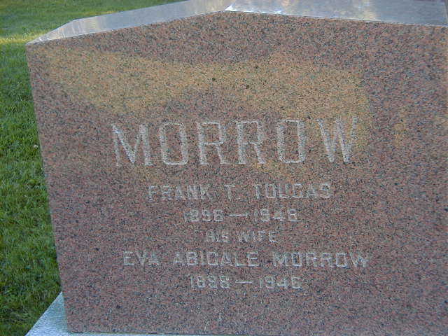 Date 1948 per Burial.1,6 He was buried on 30 September 1947 at Mount Hope Cemetery, Brighton, Northumberland Co., Ontario; Memorial: (See Exhibit) MORROW; Frank T. Tougas; 1896 - 1948; His Wife; Eva Abigale Morrow; 1896 - 1946 (Mount Hope Cemetery, Brighton, Sep 26 2004)