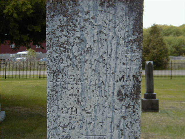 Menerva Ann Spencer was born in 1839 at Ontario; Date 1839 & location Ontario per 1881 Census. Age 55 at death in 1893 - per Burial.1,2 As of before 1859,her married name was Hinman.1 She married Derrick Jay Hinman, son of Truman Minor Hinman and Esther Kellogg, before 1859 at Northumberland Co., Ontario; per 1881 Census.1 Menerva Ann Spencer appeared on the census of April 1881 at Haldimand Twp., Northumberland Co., Ontario; Age 42 at 1881 Census: see Derrick Jay Hinman.1 She died on 20 January 1893 at Haldimand Twp., Northumberland Co., Ontario; Date Jan 20 1893 per Burial.2 She was buried on 22 January 1893 at Fairview Cemetery, Haldimand Twp., Grafton, Northumberland Co., Ontario; Memorial: (See Exhibit) Minerva Spencer; Wife of; Derrick Hinman; Died; Jan 20, 1893; Aged 55 Years (Fairview Cemetrey, Grafton, May 23, 2005.)2
