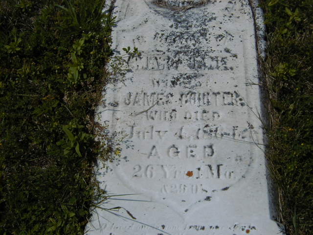 Note: Placing this Mary Jane Lawson with Peter Lawson as a guess. Census records show there were several daughters and the location is right. Is this right???1,2,3 As of 4 December 1855,her married name was Coulter.1 She married James Coulter, son of George Coulter and Mary Ann Lawson, on 4 December 1855 at St. George's Church, Trenton, Hastings Co., Canada West; Date Dec 4 1855 & location St. George's Church, Trenton per IGI Record.1,3 Mary Jane Lawson appeared on the census of April 1861 at Brighton Twp., Northumberland Co., Ontario; Age 22 at 1861 Census: see James Coulter.1 She died on 4 July 1864 at Brighton Twp., Northumberland Co., Ontario, at age 26; Date July 4 1864 per Memorial. Date July 4 1864 per IGI Record.2,4 She was buried on 6 July 1864 at Carrying Place Cemetery, Murray Twp., Carrying Place, Northumberland Co., Ontario; Memorial: (See Exhibit) In; Memory of; Mary Jane; Wife of; James Coulter; Who Died; July 4, 1864?; Aged; 26 Y'rs, 1 Mo; & 29 D's (Carrying Place Cemetery, Murray Twp., July 11, 2004.)2