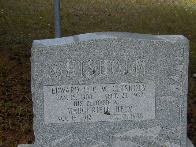 Note: Date Jan 15 1908 per Memorial.1,2 He married Marguerite Helm circa 1940; per Kemp GEDCOM sent to me via email by Cheryl Taber, March 14, 2006.3 Edward Wesley Chisholm died on 29 September 1982 at Ontario at age 73; Date Sep 29 1982 per Memorial.2 He was buried on 2 October 1982 at Gilmour Cemetery, Gilmour, Hastings Co., Ontario; Memorial: (See Exhibit) CHISHOLM; Edward (Ed) W. Chisholm; Jan. 15, 1908 - Sep. 29, 1982; His Beloved Wife; Marguriete Helm; Nov 15 1912 - Dec. 2, 1988 (Gilmour Cemetery, June 23, 2006.)2