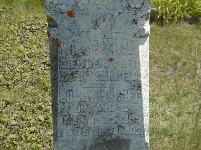 Family | Mary "Polly" Wright b. 28 Jan 1824, d. 25 Apr 1899 |