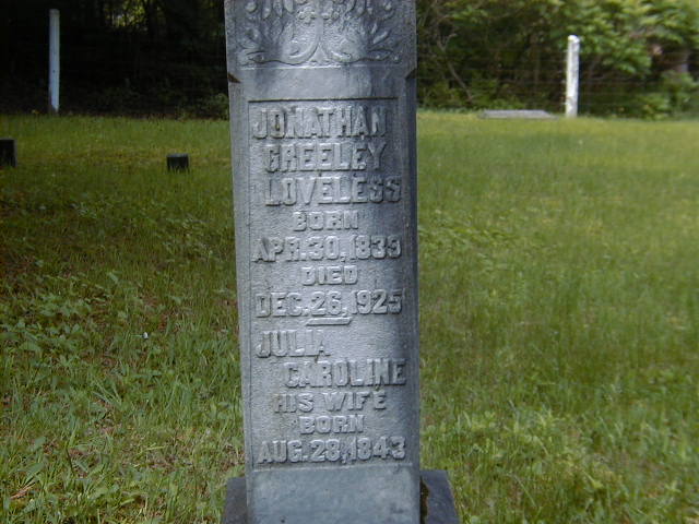 Family | Jonathan Greeley Loveless b. 30 Apr 1839, d. 26 Dec 1924 |