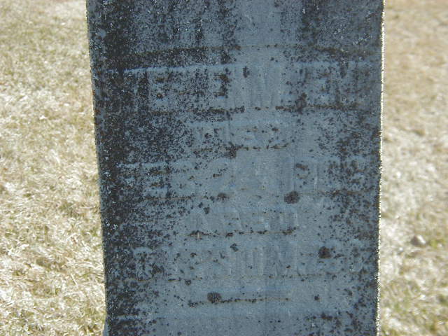 CEMSearch: Name: Stephen M. Kemp; Born: - ; Died: 1906-02-24; Age: 30y 10m 28d; Notes: Husband of Emma E. Lott; Buried: Salem Cemetery, Cramahe Twp., Sec NW; Other names: Emma E. Kemp (Lott) ( -1910), Samuel J. Kemp ( -1908.)2,4