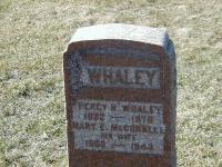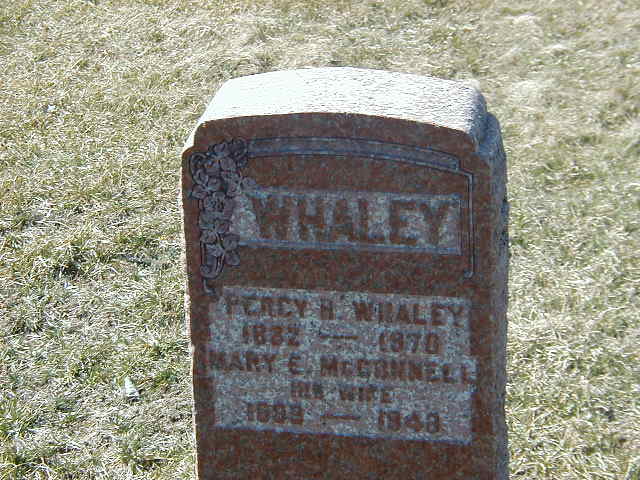 Percy Harold Whaley was born on 10 October 1882 at Murray Twp., Northumberland Co., Ontario; Date Oct 10 1881 per 1901 Census. Date 1882 per Burial.1,3 He appeared on the census of April 1901 at Murray Twp., Northumberland Co., Ontario; Age 19 at 1901 Census: see George Whaley (brother.)1 He married Mary E. McConnell, daughter of Robert J. McConnell and Edith Chesebro, on 18 June 1913 at Northumberland Co., Ontario; per Burial. per family tree of Karen Whaley on ancestry.ca, Aug 13 2023.3,2 Percy Harold Whaley was buried in 1970 at Wooler Friends Cemetery, Brighton Twp., Northumberland Co., Ontario; Memorial: (See Exhibit) Whaley; Percy H.? Whaley; 1882 - 1970?; His Wife; 1889 - 1940? (Wooler Friends Cemetery, Brighton Twp., Apr 2 2006.)3 He died on 7 January 1970 at Montgomery Lodge, Belleville, Hastings Co., Ontario, at age 87; Date 1970 per Burial. Date Jan 7 1970 & location Montgomery Lodge, Belleville per family tree of Karen Whaley on ancestry.ca, Aug 13 2023.3,2
