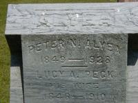 Peter Nelson Alyea was born on 3 December 1849 at Ameliasburgh Twp., Prince Edward Co., Canada West; Date 1849 per Memorial. Date Dec 3 1850 & location Ont. rural per 1901 Census. Date 1849 & locaiton CW per 1861 Census. Date 1848 & location Cda. per 1851 Census. DAte 1850 & location Ont. per 1871 Census. per GEDCOM of David D. Oakerson, May 11, 2006.1,3,4,5,6,7 He appeared on the census of 1851 at Ameliasburgh Twp., Prince Edward Co., Canada West; Age 3 at 1851 Census: see John Alyea.3 He appeared on the census of April 1861 at Ameliasburgh Twp., Prince Edward Co., Canada West; Age 12 at 1861 Census: see John Alyea.4 He married Lucy Ann Peck, daughter of John Peck and ? Cole, before April 1871 at Ameliasburgh Twp., Prince Edward Co., Ontario.5 Peter Nelson Alyea appeared on the census of April 1871 at Ameliasburgh Twp., Prince Edward Co., Ontario; Age 21 at 1871 Census: see John Alyea.5 He appeared on the census of April 1901 at Ameliasburgh Twp., Prince Edward Co., Ontario; Age 50 at 1901 Census: Alyea, Peter N., 50, b. Ont. r. Dec 3 1850, Eng., Meth., farmer, married; Lucy A., 47, b. Ont. r. Nov 22 1852, Eng., Meth., married; Vinca C., 21, b. Jan 24 1880, daughter; Ethel M., 19, b. May 15 1881, daughter; Pendlebury, John, 15, b. Eng. u. 1881, Ce, domestic (1901 Census Online: Ameliasburg, dist. 109, sub-dist. a-3, pg. 6, line 15, T-6493 - Conc 2, Lot 99.)6 He lived in April 1901 at Conc 2 Lot 99, Ameliasburgh Twp., Prince Edward Co., Ontario; Residence per 1901 Census: Conc 2, Lot 99, Ameliasburg Twp.6 He married Agnes Scott, daughter of James Scott and Margaret Waters, on 27 December 1911 at Picton, Prince Edward Co., Ontario; Marriage Reg'n.#012591: Groom: Peter Nelson Alyea; Age: 62; Res.: Ameliasburg Twp; Status: widower; Occ.: farmer; Rel.: Meth; Parents: John Alyea & Elizabeth A. Brown; Bride: Agnes Peck; Age: 61; Res.: Ameliasburg Twp; Status: widow; Rel.: Meth; Parents: James Scott & Margaret Waters; Wit.: John W. & Ethel Cross, Picton; Date: Dec 27 1911; Place: Picton; Performed by: W. D. Harrison, Picton; Sworn: Dec 27 1911 (Ontario Marriage Registration, #012591-1911, ancestry.com.)8 Peter Nelson Alyea died on 8 March 1928 at Conc 2 Lot 31, Brighton Twp., Northumberland Co., Ontario, at age 78; Death Reg'n.#025421: Groom: Peter Nelson Alyea; Date: Mar 8 1928; Age: 78y 3m 5d; Age: Res.: Conc 2, Lot 31, Brighton Twp; Born: Conc 2, Ameliasburg Twp., Dec 3 1849; Nat.: French; Status: married; Occ.: Carpenter; Parents: John Alyea & Elizabeth Ann Brown, b. Ameliasburg; Phys.: D. H. Clarke, Brighton; Inf.: Mrs. Mastin, Consecon, daughter; Burial: Albury, Mar 11 1928; Reg'd.: Mar 9 1928 (Ontario Death Registration, #025421-1928, anccestry.com.)9 He was buried on 11 March 1928 at Albury Cemetery, Ameliasburgh Twp., Albury, Prince Edward Co., Ontario; Memorial: (See Exhibit) ALYEA; Peter N. Alyea; 1849 - 1928; Lucy A. Peck; His Wife; 1846 - 1910 (Albury Cemetery, Ameliasburg Twp., July 11, 2004) per Death Reg'n.2,7