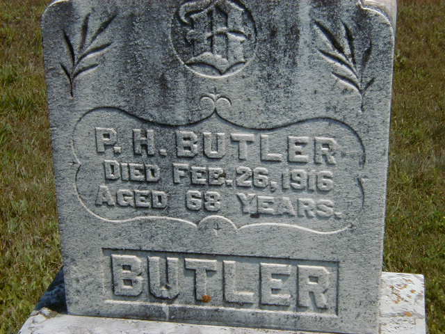 CEMSearch: Name: P. H. Butler; Born: - ; Died: 1916-02-26; AgE: 68y; Buried: Mount Hope Cemetery, Brighton, Sec 2, Row 2; No other names.3,4