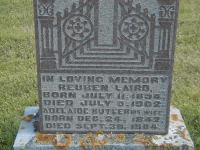 Rueben David Laird was born on 11 July 1854 at Ameliasburg Twp., Carrying Place, Prince Edward Co., Canada west; Date July 11 1854 per Memorial. Date July 11 1854 per GEDCOM of Kelly Stephenson, June 5, 2006. Date Jul 12 1858 & location Ont. rural per 1901 Census.1,2,3 He married Adelaide L. Butler, daughter of Miron Albert Butler and Harriet Ann Coltman, on 24 February 1877 at Trenton, Hastings Co., Ontario; per GEDCOM of Kelly Stephenson, June 5, 2006.1 Rueben David Laird appeared on the census of April 1901 at Sidney Twp., Hastings Co., Ontario; Age 42 at 1901 Census: Laird, Reuben D., 42, b. Ont. r. Jul 12 1858, Irish, Head, Meth., G.T.R. lab., Married; Adelaide, 60, b. Ont. r. Dec 24 1840, Wife, Irish, Meth., married; Sarah, M., 22, b. Ont. r. Jan 29 1879, daughter; Eva, 15, b. Ont. r. Jun 9 1885, daughter (1901 Census Online: Sidney, dist. 72, sub-dist. b-5, pg. 14, line 42, T-6473 - pt. E1/2 Lot 4, Conc 2.3 ) He died on 5 July 1902 at Trenton, Hastings Co., Ontario, at age 47; Date July 5 1902 per Memorial. per GEDCOM of Kelly Stephenson, June 5, 2006.1,2 He was buried on 8 July 1902 at Carrying Place Cemetery, Murray Twp., Carrying Place, Northumberland Co., Ontario; Memorial: (See Exhibit: In Loving Memory; Reuben Laird; Born July 11, 1854; Died July 5, 1902; Adelaide Butler His Wife; Born Dec. 24, 1842; Died Sep. 30, 1904 (Carrying Place Cemetery, June 10, 2006)