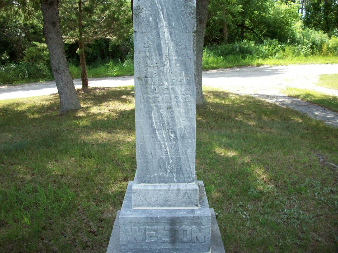 Levi Bartlett Welton was born on 8 November 1856; Date Nov? 8 1856 per Memorial. per marr. reg'n. of son Charles Gerald Welton.1,2 He married Bessie Jones before 1896; per marr. reg'n. of son Charles Gerald Welton. Levi Bartlett Welton died on 16 October 1920 at age 63; Date Oct 16 1920? per Memorial.2 He was buried on 18 October 1920 at Castleton Cemetery, Castleton, Northumberland Co., Ontario; Memorial: (See Exhibit) Levi Bartlett; Welton; Born: Nov? 8, 1856; Died; Oct 16 1920?; His Wife; Bessie; Jones; Born; Dec 22 1860?; Died; Jan 12, 1918? (Castleton Cemetery, Castleton, Jul 13 2009.)2