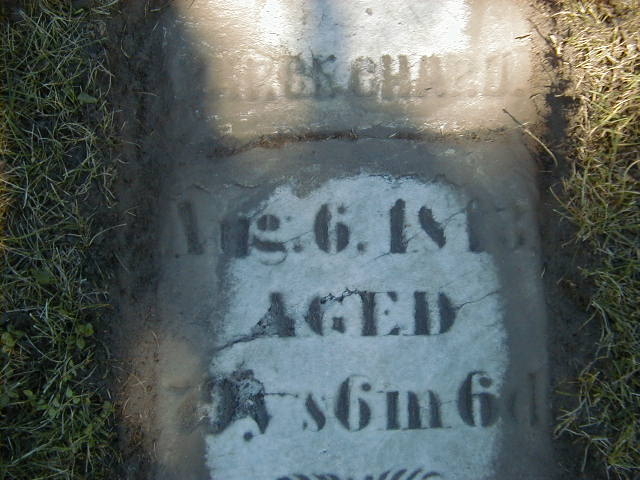 CEMSearch: Name: Carge? Chard; Born: 1774?; Died: 1813-08-06; AgE: 39y 6m 6d; Notes: Stone hard to read, first name unclear; Buried: Stirling Cemetery, Sec I; No other names.