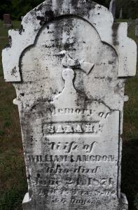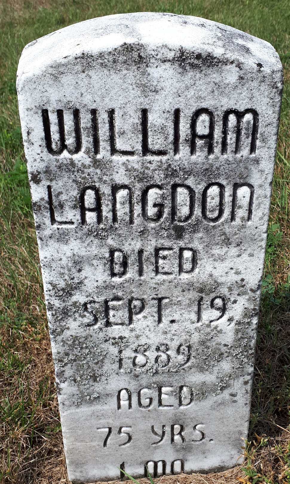 OCFA: Name: Langdon, William (h/o 2st Sarah) & (h/o 2nd Amelia Vanscriver); Cemeter: Waite; County: Northumberland; Township: Cramahe; Ref.: LSGS-034 (Ontario Cemetery Finding Aid - Search) Note: No stone - may be unclear one.11,7,12