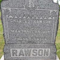 Martha Langdon was born on 16 March 1843 at Prince Edward Co., Canada West; Date Mar 16 1843 & location Prince Edward Co. per Death Reg'n. Date 1846 & location Ont. per 1921 Census. Date 1835 & location Ont. per 1881 Census. Date 1845 & location UC per 1861 Census. Date 1844 & location Cda. per 1851 Census.1,2,3,4,5 She appeared on the census of March 1852 at Brighton Twp., Northumberland Co., Canada West; Age 7 at 1851 Census: see William Langdon.1 She appeared on the census of April 1861 at Brighton Twp., Northumberland Co., Canada West; Age 16 at 1861 Census: see William Langdon.2 As of 20 May 1868,her married name was Rawson.6 She married Charles Rawson, son of Elihu Rawson and Almira Garratt, on 20 May 1868 at Northumberland Co., Ontario; Marriage Register: Groom: Charles Rosen; Age: 25; Res.: Cramahe Twp; Parents: Elisha & Elmira Rosen; Bride: Martha Langdon; Age: 23; Res.: Cramahe; Parents: William & Sarah Langdon; Date: May 20 1868; Place: Northumberland Co. (Ontario Marriage Register, ancestry.com)